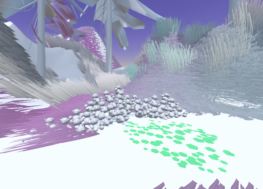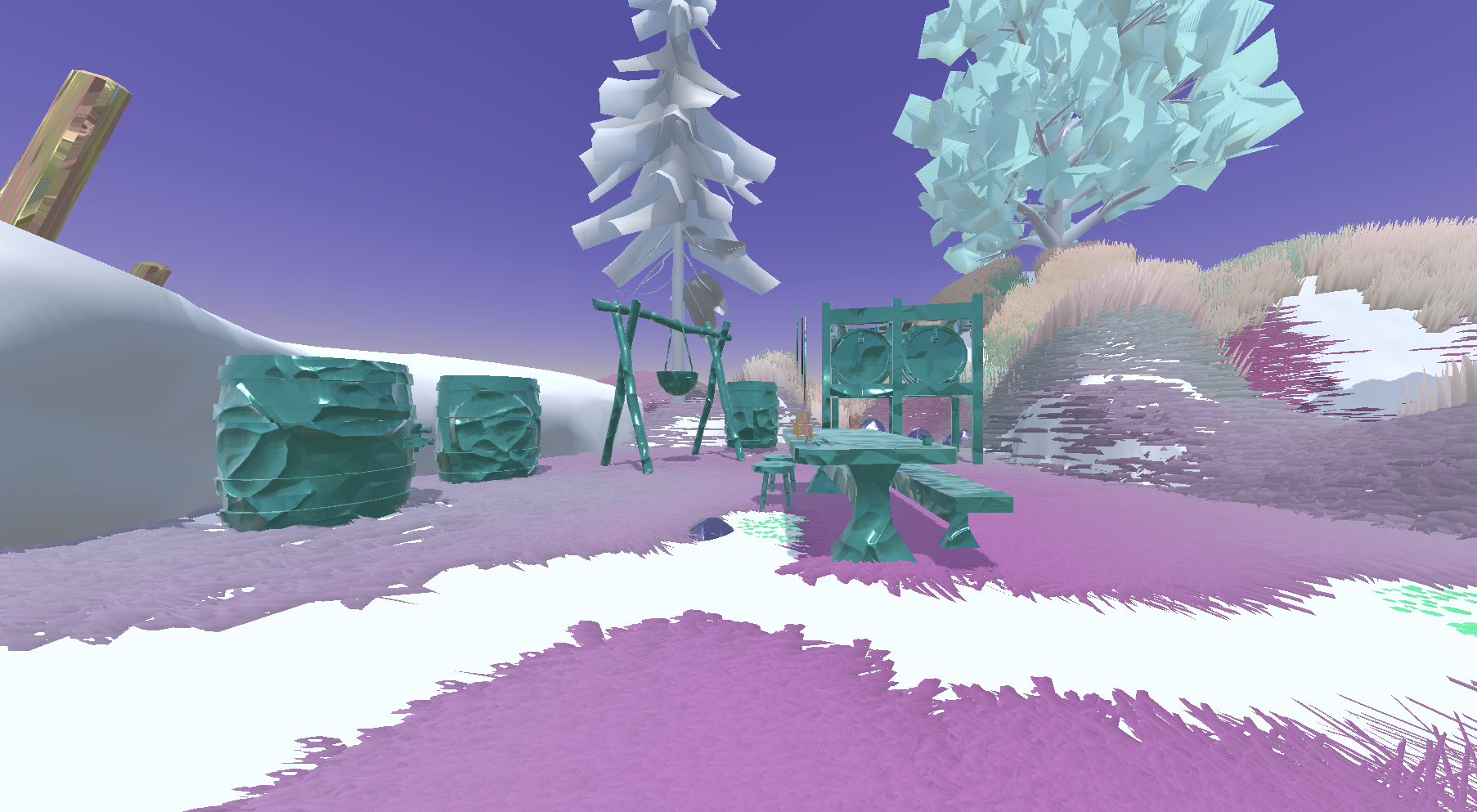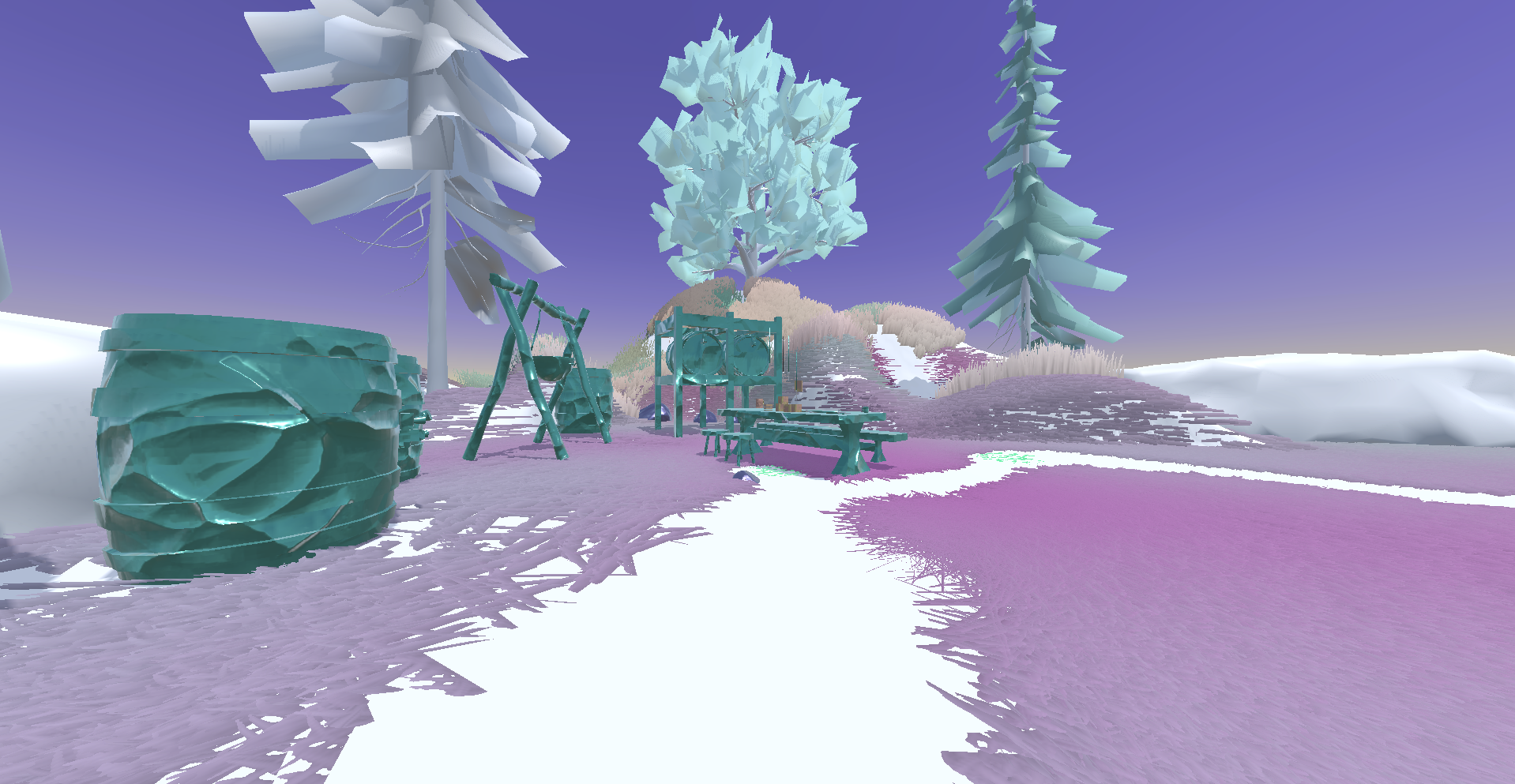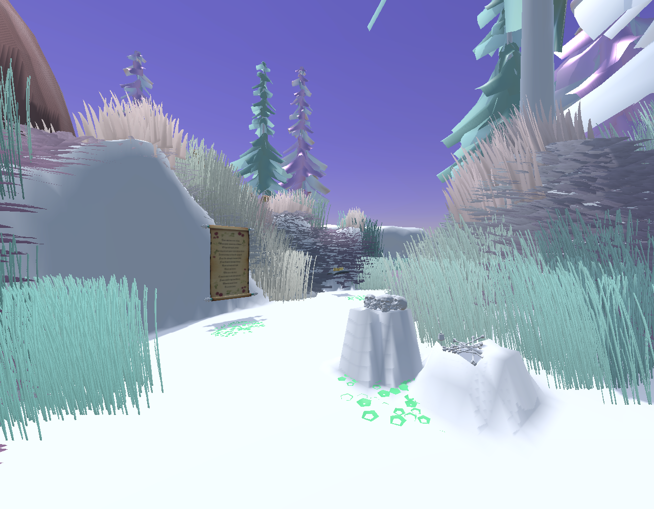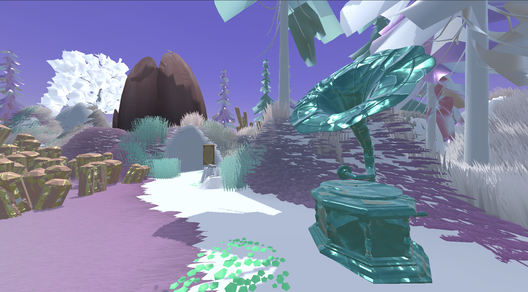 I knew I wanted to set the narration of this story, in a grove setting; from the grass, to the objects scale and placement, the user would get this feeling of being transported into a mystical garden located in a mystical world.